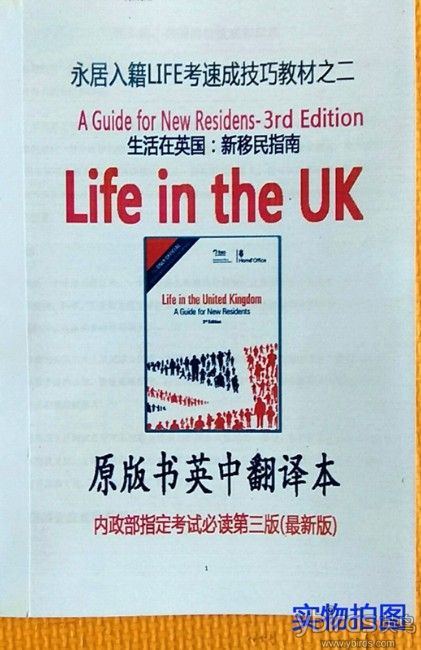 新旧要求:其它价格:50 60交易方式:上门自取交易地址:唐人街当面交易或保险挂号邮购你第二天签收邮包联系人:罗电话:075-6131-0857其他联系方式:微信:uktest小编是超过7年的英鸟资深老会员: 从7年前的 网鸟网 到现在的 英鸟网 一直从事翻译、编辑、销售life in uk中英教材 和 英国驾照中英对照考试教材。小编是广州人来英国前早年在广州新东方接受出国培训,现在每年的英文原版书(永居入籍LIFE考、驾照考、B1考)都是交给 广州新东方的我老师翻译。按照每年Life考最新英文考题和DASA(英国驾照考试标准局)的新版英文原版教材同步翻译更新出新的版本。0759-320-4298这个为华人考LIFE IN UK 和 英国驾照笔试 提供最权威最专业教材和超过7年免费咨询的电话已经在华人圈内广为流传和好评。LIFEinUK中英◆伦敦唐人街曼城唐人街格拉斯哥泗和行纽卡索唐人街等十大城市当面交易或者保险挂号邮购今天办明天你签收邮包★专门为华人对付考试用的核心词汇记题和解题技巧。 这是一套专门为华人永居入籍只需短期温书 而快速通过Life in the UK Test英语考试而专门设计的教材。分为两大部分:(一)标准教材:完全忠于最新官方英文原版书籍翻译的中英对照书籍。(翻译原版来自英国书架)(二)技巧教材:技巧教材全称捷径技巧教材 是 通过重点要点归纳、关键考点、数字联想记忆、关键词汇等中国新东方考试技巧捷径而编译的教材。 由广州新东方考试专家运用 中国新东方 短期突击攻克英文考试教育方法编译和撰写。【注解:广州新东方堪称是世界鬼头英文考试的第一克星】