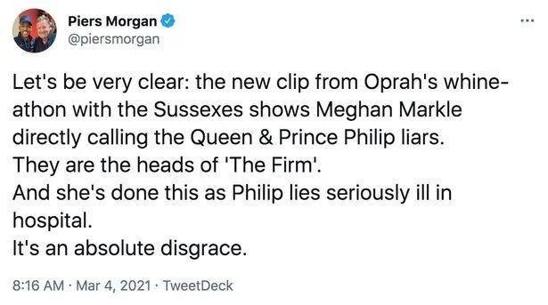 这样的话语可以算是大逆不道了,就算只是一般家庭,作为晚辈,也不能这样公开羞辱指责长辈,更何况如今菲利普亲王还在医院看病。