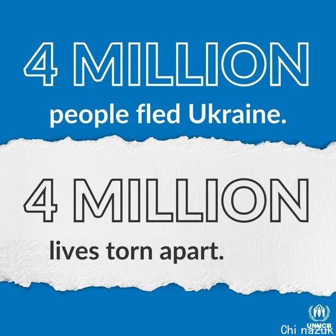 按照联结国的数据,自2月24日以来,约有401万难民逃离乌克兰,650万人在该国境内家破人亡,估量有1,300万人滞留在受武装冲突影响地域或无奈分开。