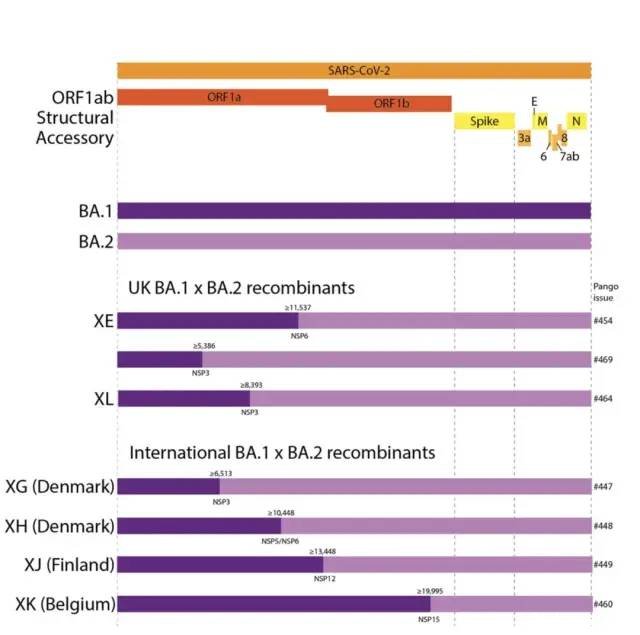 按照英国卫生与平安局(UKHSA) 3月25日公布的新冠变种讲演显示,XE是由奥密克戎亚变种BA.1和BA.2组合而成的重组体,包罗S基因在内的大部份基因。