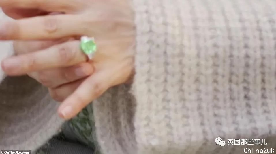 视频中,镜头先对准J Lo手上的定亲戒指。