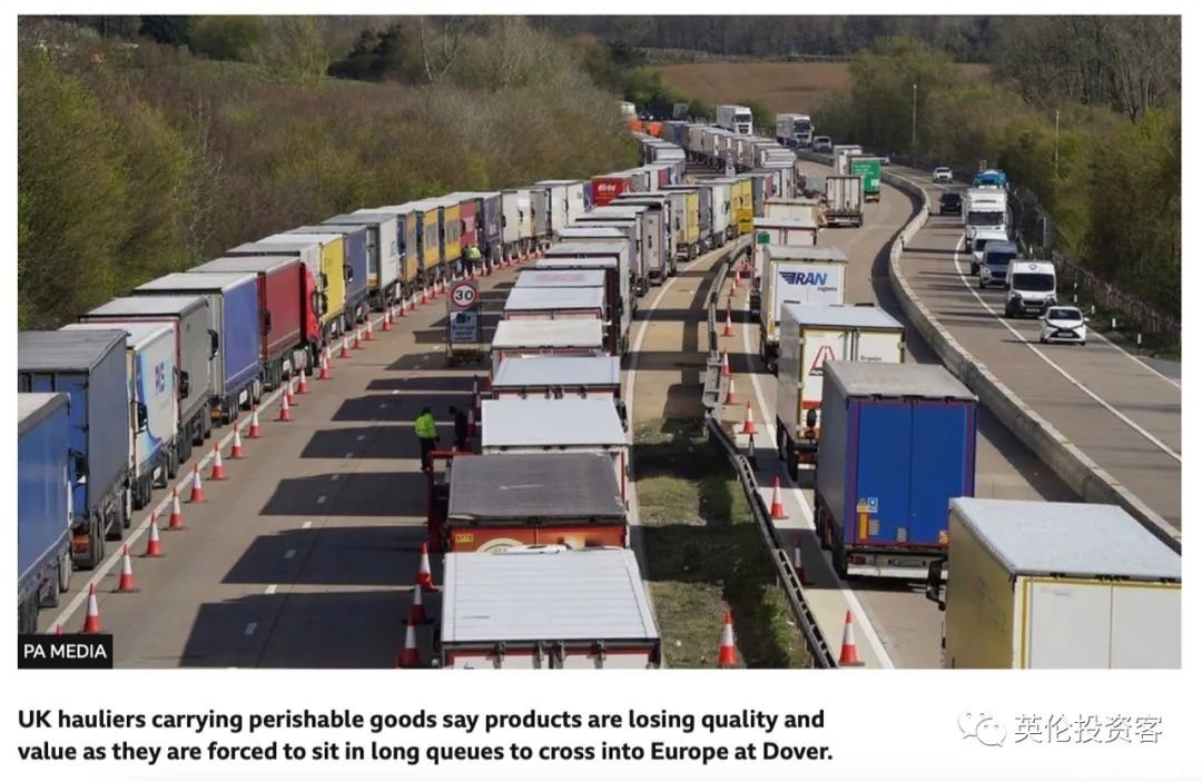 运送生鲜等易腐坏产品的运输公司表现,因为在多佛排队过久,货物的品质和售价不停降落,每辆卡车的损失或高达800英镑。