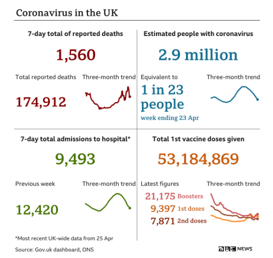 过来四天均匀天天只要 8,900 新冠新增例,逐日新增病例延续第 22 天降落。4 月 27 日因新冠出院比前一周增加了近 19%,因新冠死亡人数也在降落。