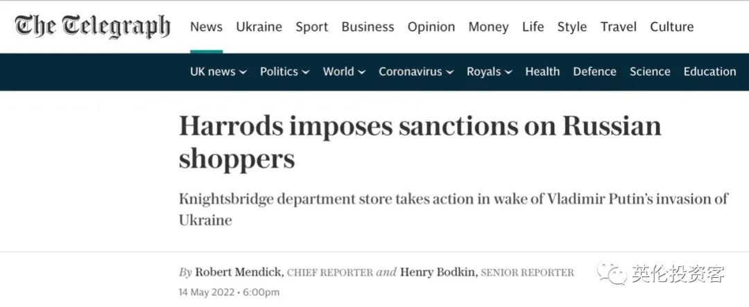 俄乌和平发作后,英国政府实行了一系列对俄制裁,包罗解冻寡头资产、限度寡头出境、封闭投资移民签证等措施。伦敦Harrods(哈罗德)表现,新规是为了遵循国度的相干制裁规则。