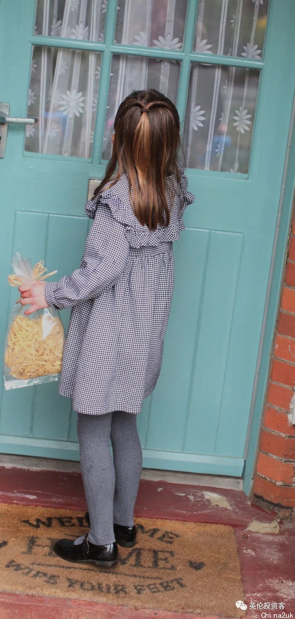 上面这张图显示的是夏洛特公主在疫情期间为无奈出门的白叟送食品: