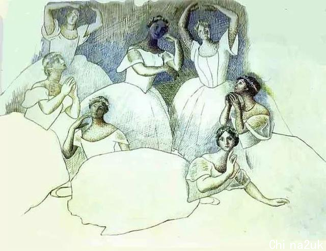 但是,狂热的爱逐步演化成为了,病态的愿望。在「玫瑰时代」中前期,毕加索创作了《后宫》:图中男人以致高无尚的姿势,统辖着一群女人,让她们在爱中癫狂弄舞。这幅画,恰是过后毕加索心田写照。