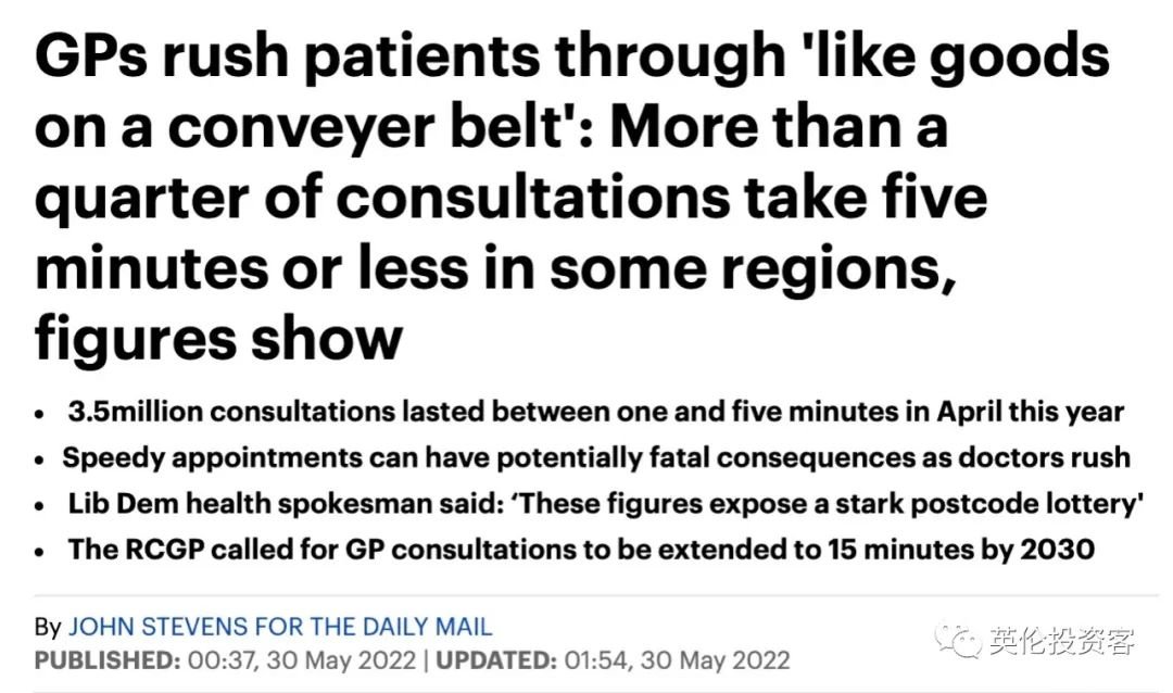 讲演称英国部份地域GP问诊时长太短,存在漏诊和开错药的危险