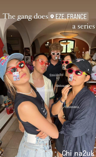路过一家卖记念品的商店,几人戴起了儿童版墨镜,纷纭摆出酷盖的姿态,心情非常冷峻,跟脸上的墨镜造成了光鲜的反差,使人忍俊不由。