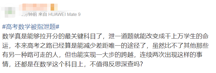 这个事情,目前尚无民间人员回应。但微博上不少网友以为,大规模泄题比一个先生做弊更重大。