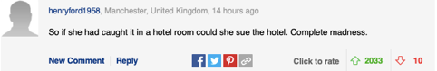 “所以,假如这两人是在酒店房间里沾染上的,她要起诉的就是酒店了。真是疯了。”