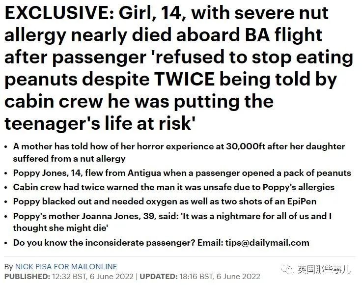假如飞机上有乘客吃花生,仅仅经过空气传布的微量过敏源,对Poppy来讲就曾经十分风险,有可能诱发她的过敏症爆发。