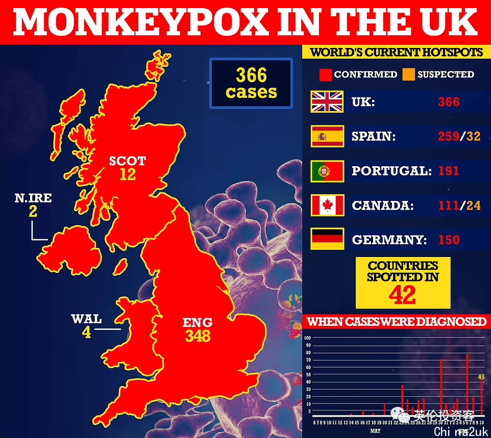 英国猴痘确诊升至366例,五分之四位于伦敦