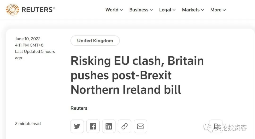 《北爱尔兰议定书》是脱欧协定的一部份。按照协定,北爱尔兰地域留在欧洲繁多市场与欧盟关税联盟内,以避免爱尔兰岛内泛起陆上“硬界限”。不外,英国大不列颠岛进入北爱地域的部份商品需承受海关和疆域平安反省。