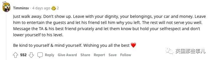 不外,也有批判说,楼主的做法太过甚了:“间接走掉就行-了,不要在聚首上泛起。带着你的尊严、你的财物、你的车、你的钱一同分开,让他去接待主人,再让他的敌人们传达你为何会走。其他的不会对你有益处。暗里给阿谁助教和他的好敌人发信息就好,让他们知道都产生了甚么。记得要保护你的自尊,不要把本人变得和他同样low。对本人好一点,多在乎在乎你本人,祝你所有顺利。