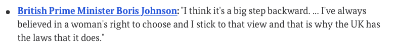 法院的这项裁决是对过往法律的稀有逆转,将使美国古代生殖权益的根底产生断裂。游行者说,在某些状况下,他们对最高法院的抉择感到震惊。"这与特朗普被选时的觉得类似",电影编纂奥里亚纳·索杜说。索杜表现,在5月2日泄漏判决草案后,她曾经知道全国规模内的堕胎权将被褫夺,但“它真的产生了,依然让人震惊”。索杜说,这类愤恨是针对政治轨制自身。"她说:"共和党人显然有一个十分弱小的议程,而咱们却让这所有产生。“我耽心的是,他们接上去会对异性婚姻下手”。此举不只在美国国际惹起争议,也受到了英国、法国、加拿大等国度首脑和民众的谴责。鲍里斯发推称:“这是一个很大的退化。我始终置信主妇有选择的权益,并秉持着这一信念。这就是为何英国有这样的法律。”
