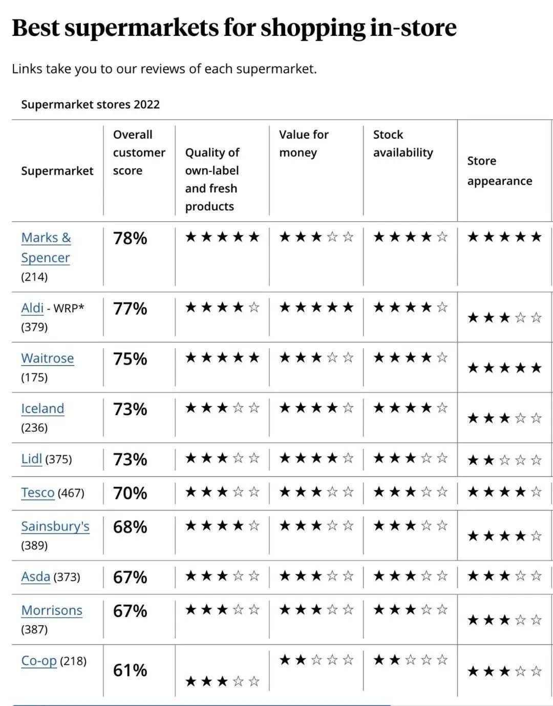 而在往年的评比中,靠着过人的性价比,Aldi间接力压群雄排到了第二位,仅次于Marks & Spencer之后。