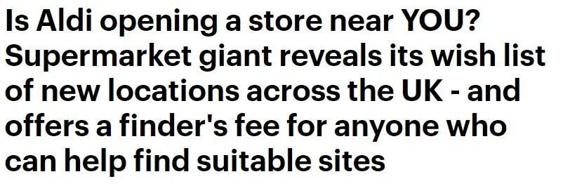 为了尽快选定适合的地址,Aldi超市还面向全社会展开了有偿求助,只有有人帮助提供适合的地点信息就能获取丰厚嘉奖。