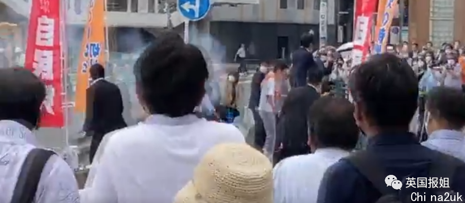 两枪之间简直没有距离,这之后便传来第二声巨响,安倍在这一枪之后倒下,现场人群立刻分割了警方和救护。