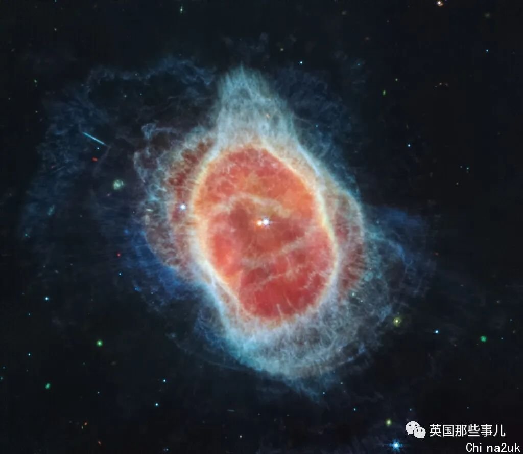 这次借助韦伯望远镜中红外波段的观测,咱们终于看到了这个星云里的另外一颗,就是那颗昏暗的白色星星。