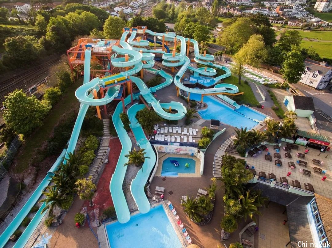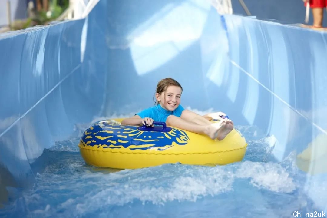 其中盘绕设计的滑道是英国最长的滑梯之一,且速度很快,能够纵情享用水上飘流的觉得!