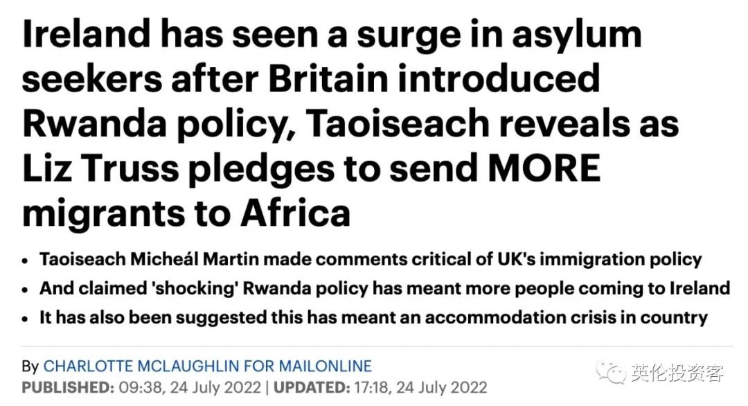 自从英国宣告要将成年男性不法移民遣送至东非国度卢旺达之后,爱尔兰总理称,改道返回爱尔兰的偷渡难民人数激增。但与此同时,英国下议院特别委员会对卢旺达方案的无效性提出质疑称:“没有明白证据标明该方案会禁止难民经英吉利海峡偷渡到英国”。