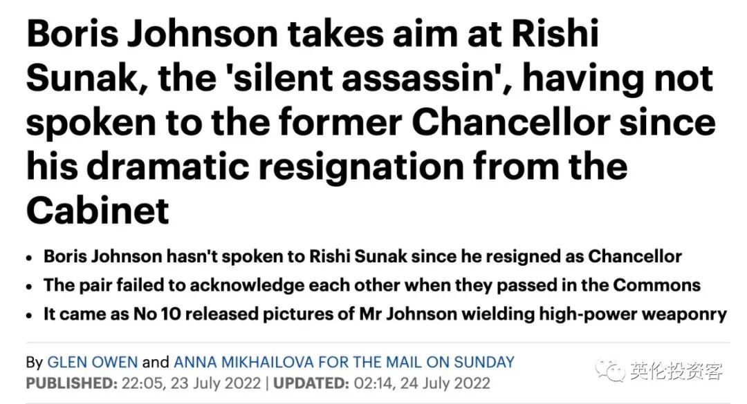 媒体得悉:鲍里斯遭苏纳克“变节”后,再也没和他讲过话