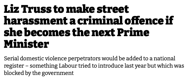 在看到Liz Truss胜利“吃到螃蟹”后,Rishi Sunak也随着在女性暴力问题上做出许诺,将设立一项新的刑事犯法,未经赞成拍摄女性上半身的“窥胸行动“downblousing定为不法;为受益者提供一生心思安康办事等。