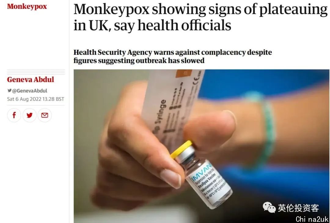 英国卫生平安局(UKHSA) 于8月6日宣告,截至本地时间8月4日,英国已确诊2,859例猴痘病例,但疫情增速曾经放缓。