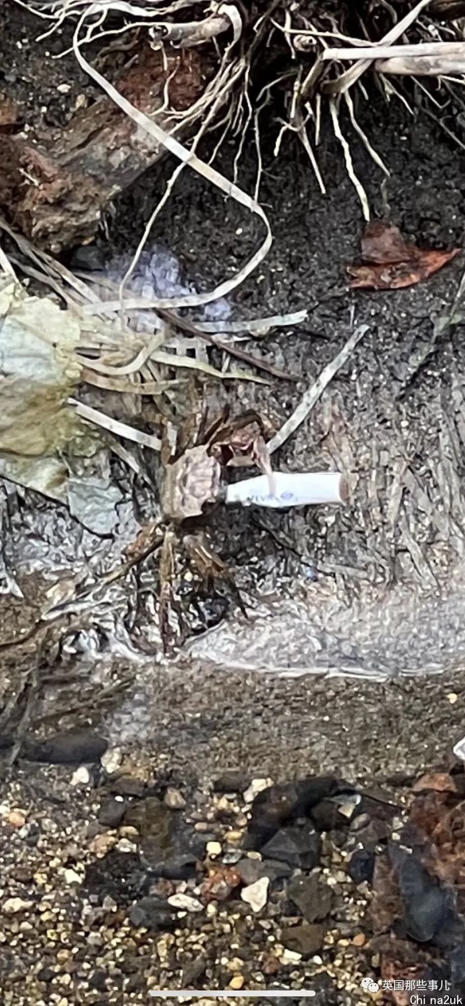 这只螃蟹十分喜爱烧烤酱。它跑到河两头后,扯开里面的包装,将外面的酱料吃了个精光。