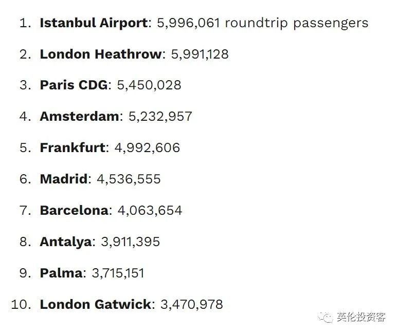 按照国内机场协会(ACI)2022年6月的最新数据,希思罗机场当月的客流量高达599万人次,是目前欧洲第二忙碌的机场,仅次于土耳其的伊斯坦布尔机场。