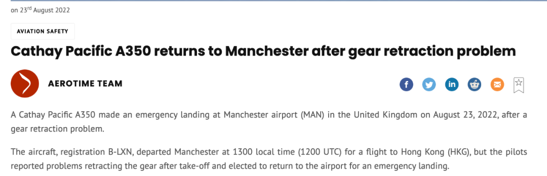 终究机长仍是抉择根据预防措施出航,管制塔台在接到要求出航的申请后,当即支配跑道,不外在下降以前必需先放油。在出航途中,飞机到达爱尔兰海上空,进行了燃料倾倒随后才飞往曼彻斯特机场,并于香港本地时间晚上九点三非常平安下降。这时候候,停机坪上曾经停满了消防车和救护车,早早地做好应答不测的筹备。目前,国泰公司正在对这架飞机进行检测和培修。关于这起变乱,国泰方面也露面进行了回应。国泰航空发言人曾经证明,乘客和机组人员都平安,真的是可怜中的万幸。“国泰航空证明,CX216航班于(曼彻斯特)本地时间下昼十二时34分从曼彻斯特飞往香港,在起落架唆使异样时进行了预防性顺序航班前往曼彻斯特。航班于本地时间14时23分顺利平安下降。