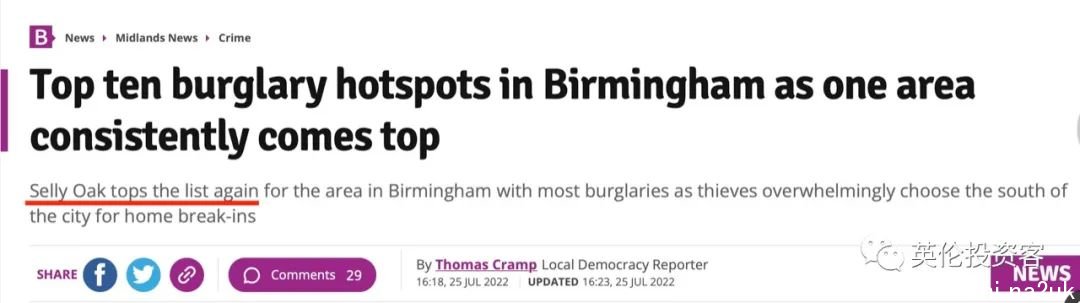 《伯明翰邮报》间接称:“Selly Oak是伯明翰偷盗最频发之地,在2020年、2021年和2022年均匀天天都有入室偷盗产生。”
