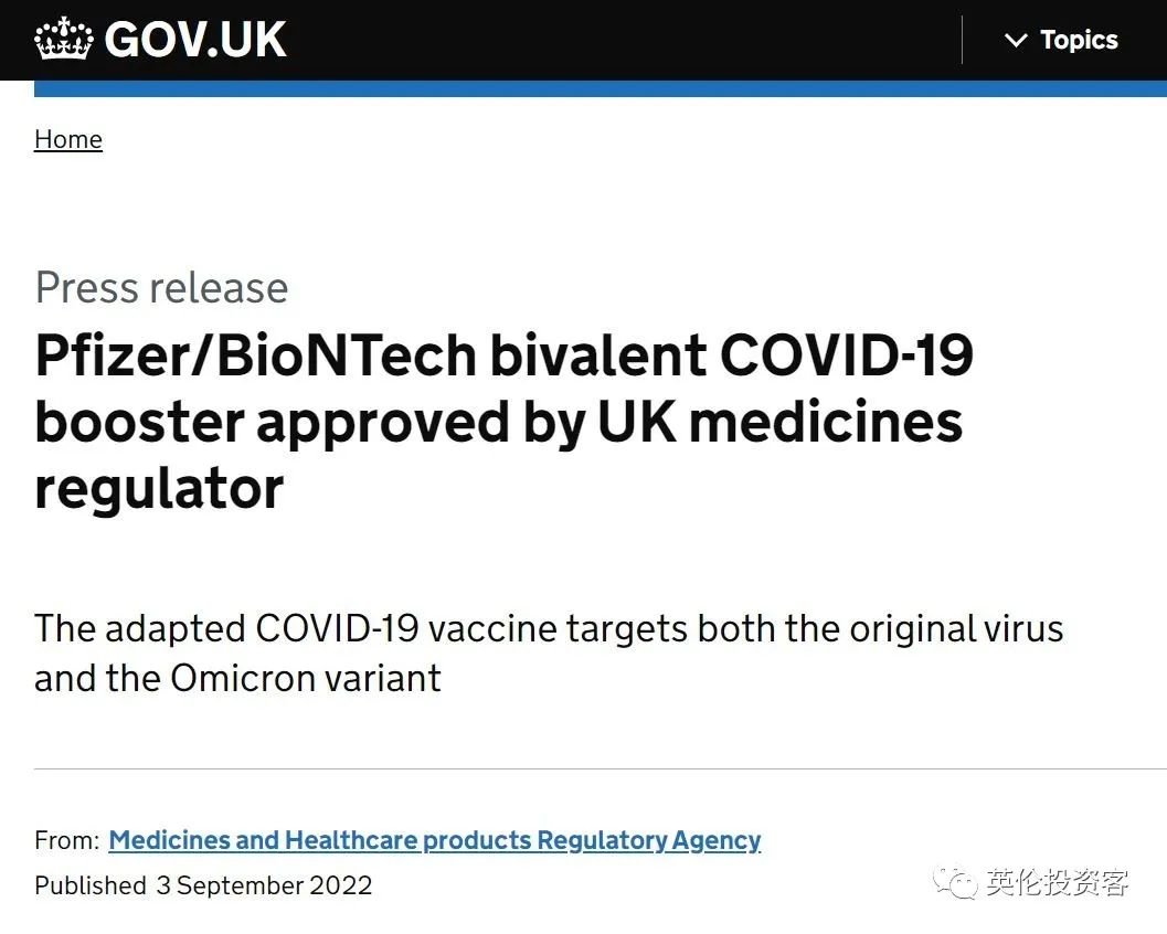 本地时间9月3日,英国药品和医疗产品监管署(MHRA)公布声明,宣告批准辉瑞/BioNTech二价新冠疫苗用于十二岁及以上人群。