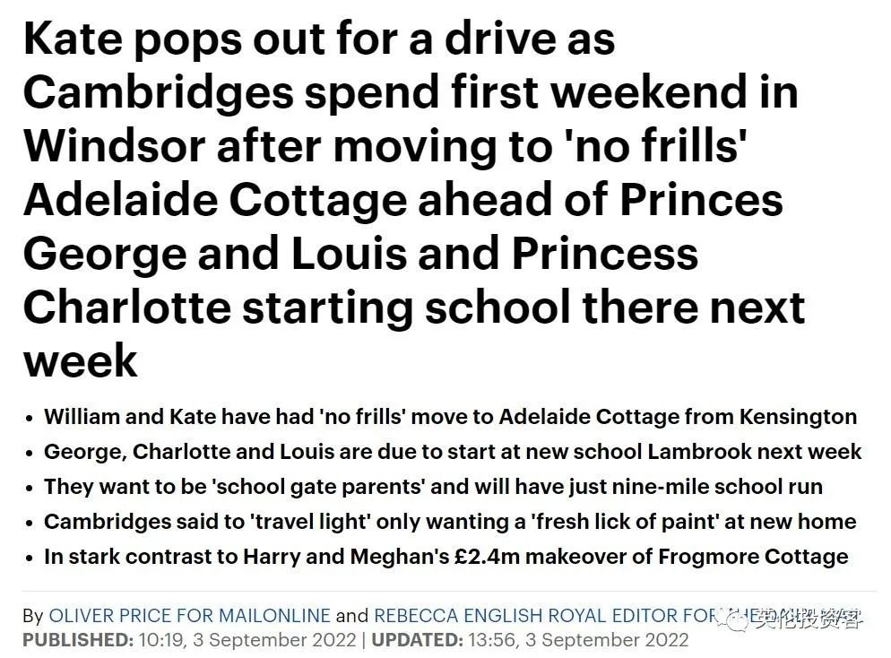另外,威廉凯特的三个孩子都将转学到离住所只要9英里的Lambrook School(兰布鲁克学校),预计下周正式开学。