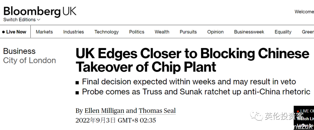 英国政府或在数周内宣告禁止中资收购英国最大芯片厂