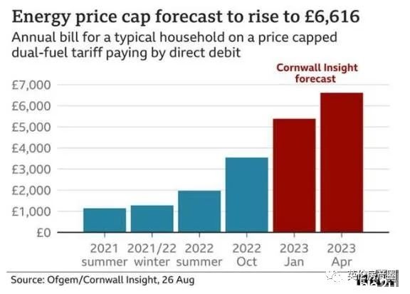 往年8月底,英国动力监管机构Ofgem宣告,10月,将把英格兰、威尔士和苏格兰的家庭动力价钱下限上调80%,至3,549英镑。