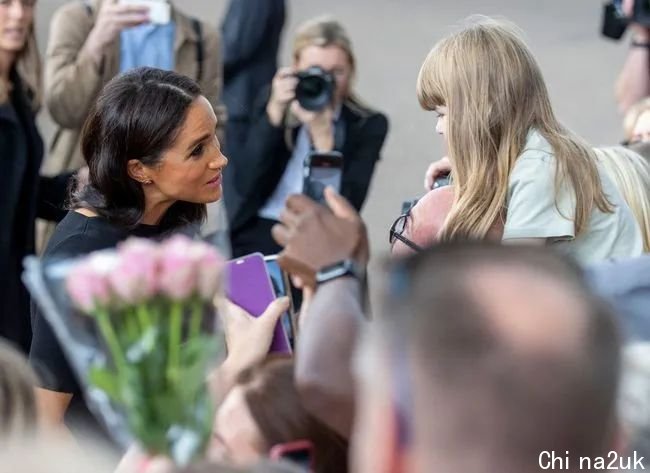 在温莎城堡前与大众打招呼,握手沟-通
