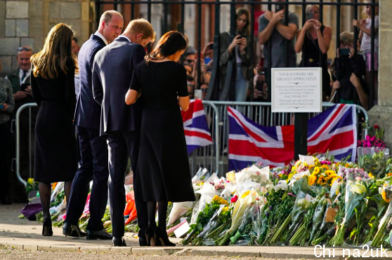 9月10日(周日),威廉凯特夫妇和哈里梅根夫妇稀有同框,在温莎城堡左近向前来献花和慰劳的大众表现感激。这也是哈里梅根在2020年3月移居美国后,四人初次同框。