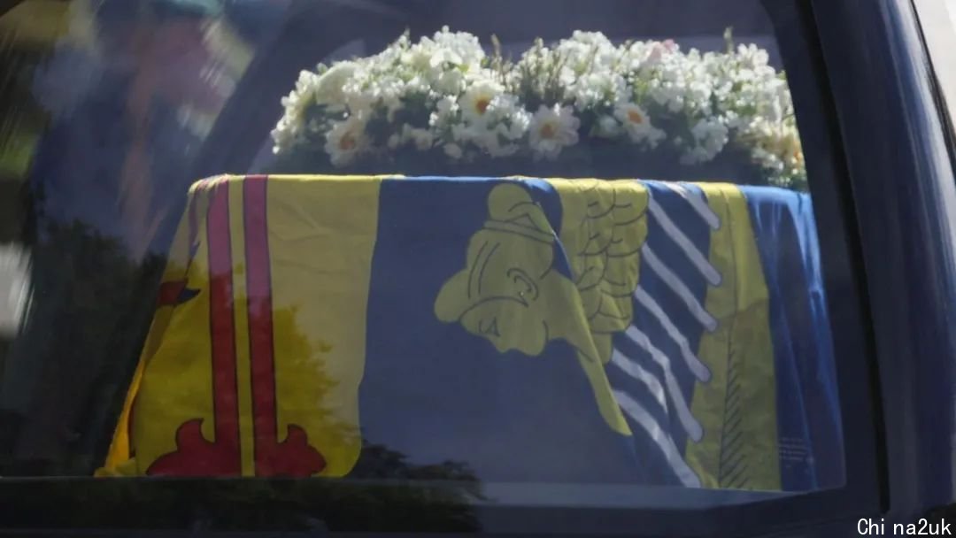 早上10时,巴尔莫勒尔堡的六名看守员将把灵柩抬上灵车,灵柩上掩盖着苏格兰皇家旗号和花圈。
