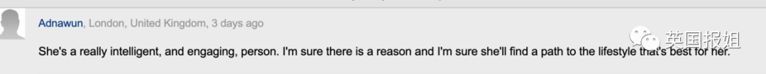 “她是个聪明优雅的人,变为这样一定有甚么隐情吧。我置信她会找到一个更合适她的糊口形式的。”