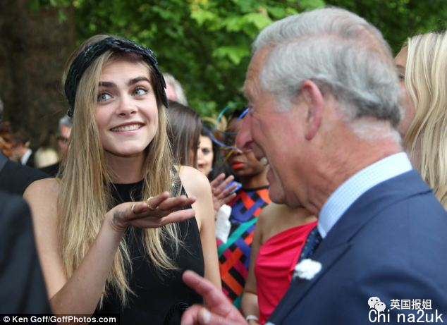 Cara始终以她古灵精怪的气质闻名,即便是在和查尔斯(过后仍是王子)见面时,也是行走的心情包。