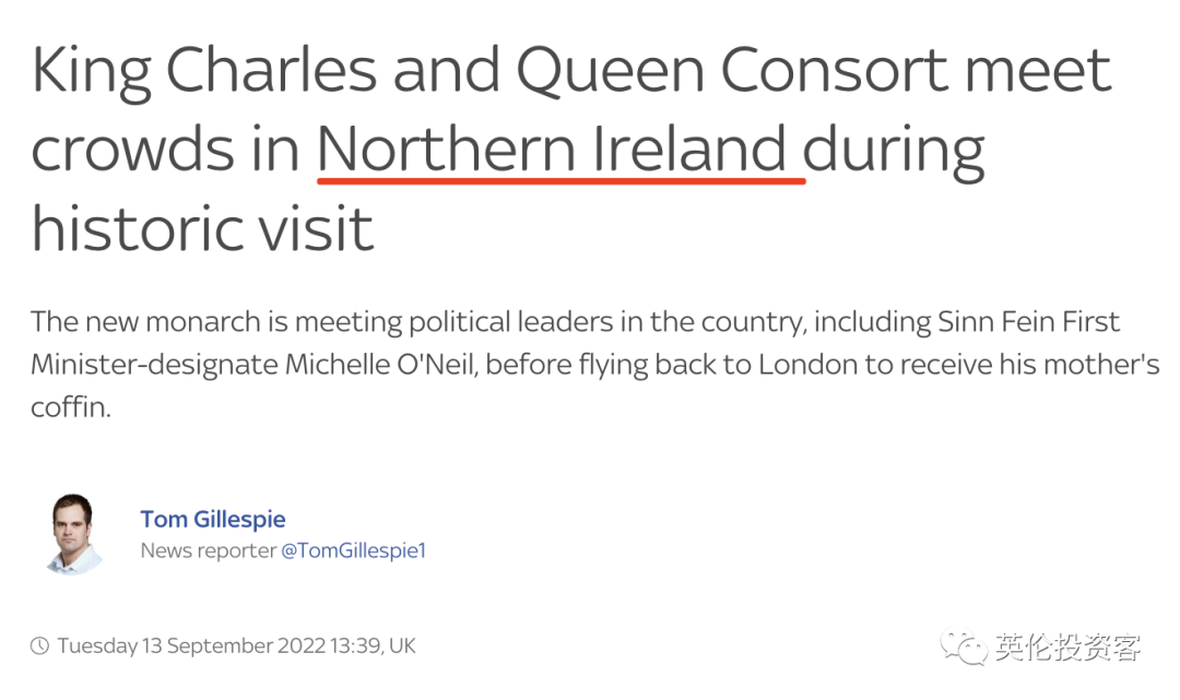 据英媒(9月13日)最新报导,英国国王查尔斯三世和王后明天正在北爱尔兰地域进行拜候,查尔斯三世还将会面北爱各党派领导人。