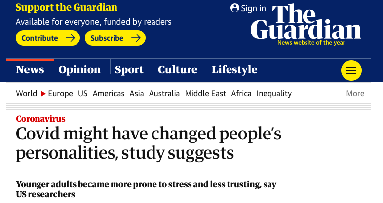 按照钻研,新冠疫情带来的影响多是如斯之深,以致于乃至能够改动人们的性情。