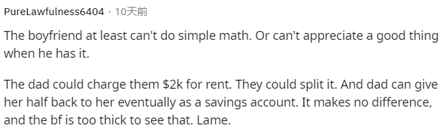 “你男友需求明确,不是你不必付房租,只是你爸付了你的那份...”