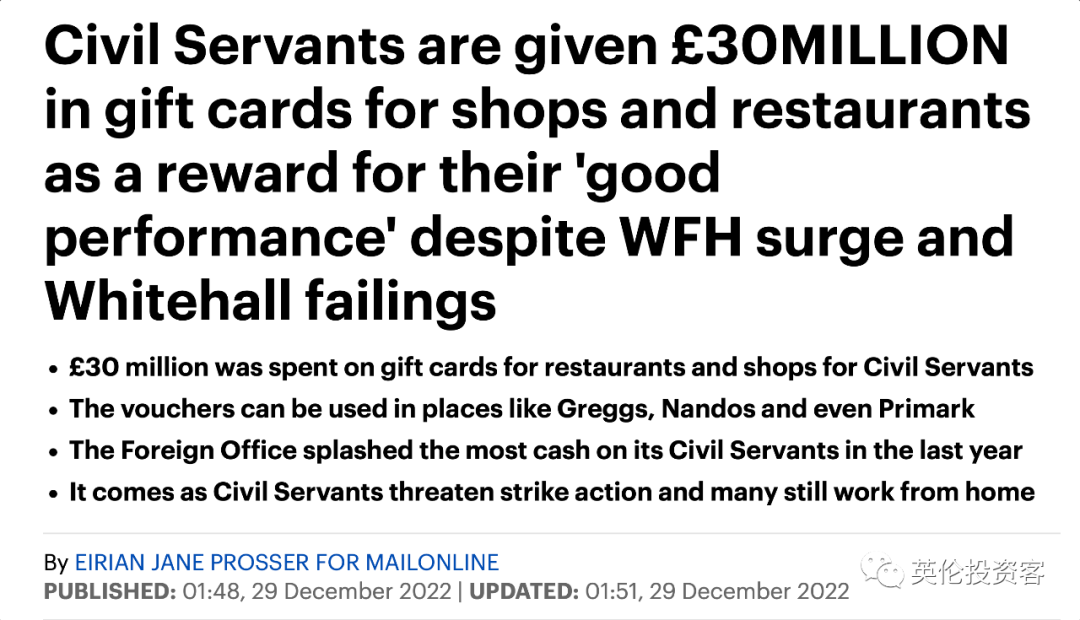 英媒爆料:2022年政府给公务员发放了近三千万英镑的消费卡