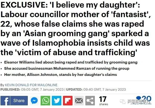 为了停息民众情绪,坎布里亚郡警方无法颁发了声明,说他们对威廉姆斯所说的“亚裔诱拐集团”做过详实考察,但没有任何证据能证实这一点。
