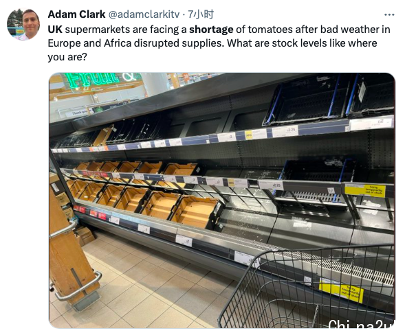 英国陈腐产品同盟贸易机构的首席履行官Nigel Jenney说,供给问题并不是由繁多要素形成,其中包罗了一系列休息力充足和高动力本钱,以及天气缘故。预计这些问题可能会继续几周,直到英国当地供给开始。