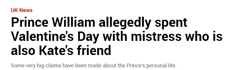 目前无奈得知,这段绯闻到底是真是假,但这类言论确实给威廉和凯特的形象抹了黑。
