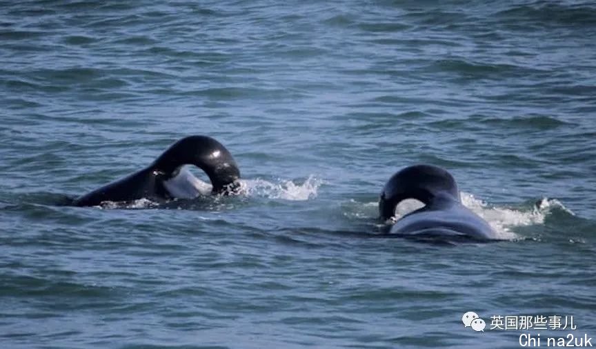 从两只雄虎鲸塌软的背鳍来看,它们应该是春秋对比大了,不大违心追猎智商较高的陆地哺乳植物,因而转而去捕猎头脑不那末好使,容易被捉住的沙鱼。
