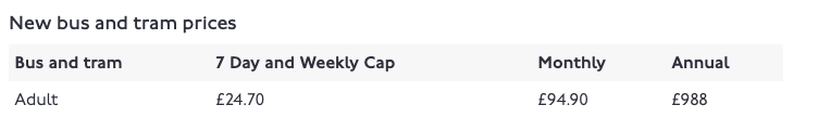 逐日票价下限(daily cap)涨价30便士,至£5.25
